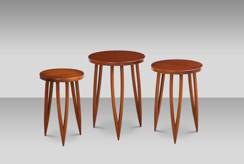 Italy | 2020 Set of 3 mahogany tables, each with 3 hairpin legs. Made in Italy and very customizable. 20 - 24 week lead-time.