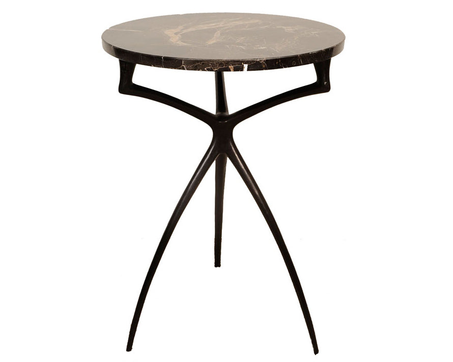 France | 2010 Abstract bronze base with three tapering legs & sculpted supports. Circular top of polished, highly figured marble. Created exclusively for Donzella. Made in France per order. Lead time: 20-24 weeks.