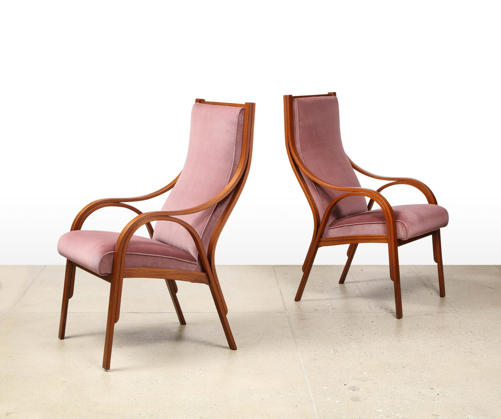 Italy | c. 1959 Bent wood, velvet upholstery. Produced by Sim and awarded an honorable mention in 1960s Compasso d’Oro. Available as singles, pairs, or set of 12.
