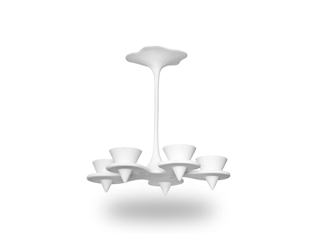 France | 2008 Cloud-shaped hanging fixture of plaster. 5 light sources inside upward-facing cones. Made in France per order. If not in stock, 6-8 month lead-time.