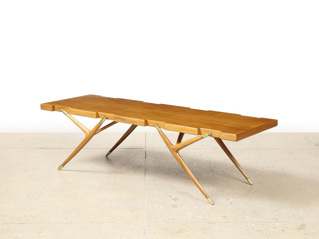 Italy | c. 1952 Walnut, brass. Retailed by M. Singer & Sons, New York. Made in Italy for the American market.