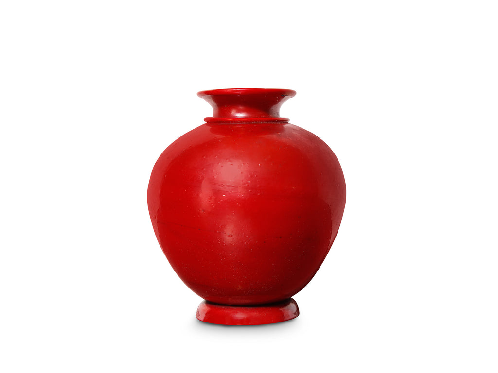 Rare, early vase created by one of the most celebrated designers of Murano glass.  Opaque red "pasta" glass with low domed foot, flared opening at top and applied ring around the base of the neck.  The density, texture & variation of color displayed in this vase is consistent with other examples of Scarpa's work from this period.  This is a rare example of this type of work, and no other documented examples of this form are known to exist.  Acid-stamped "CVM" with crown.