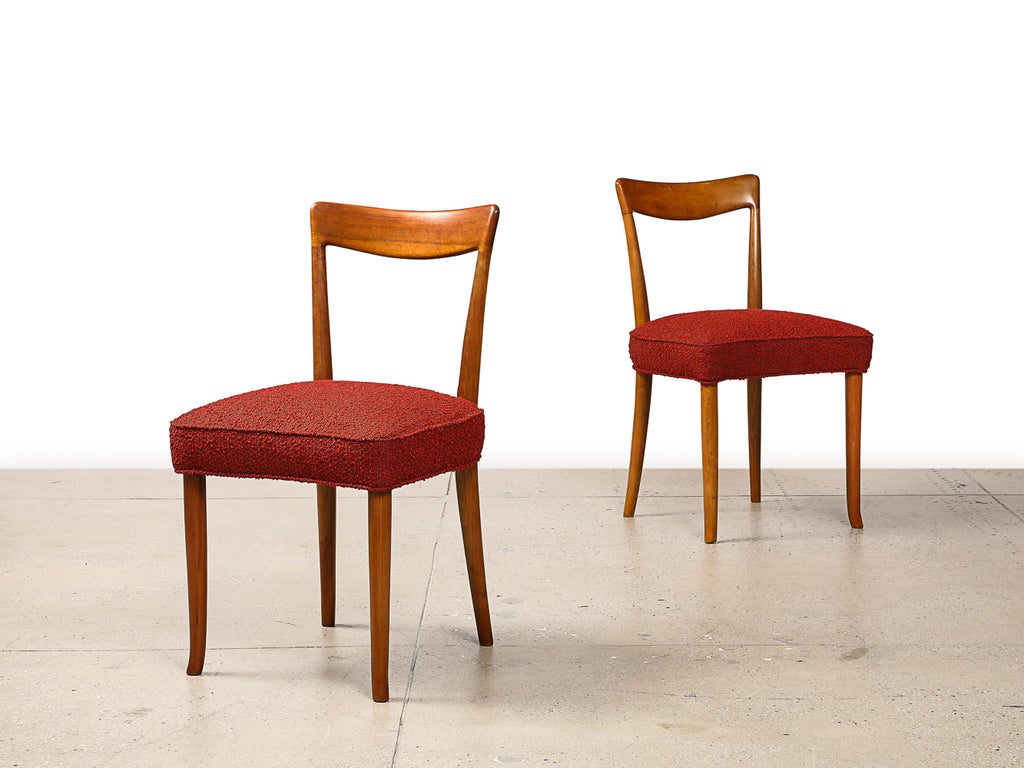 Italy | c. 1944 Walnut, upholstery. Model #5126, originally designed in 1939. Elegant side chairs produced by Arredamenti Borsani Varedo.