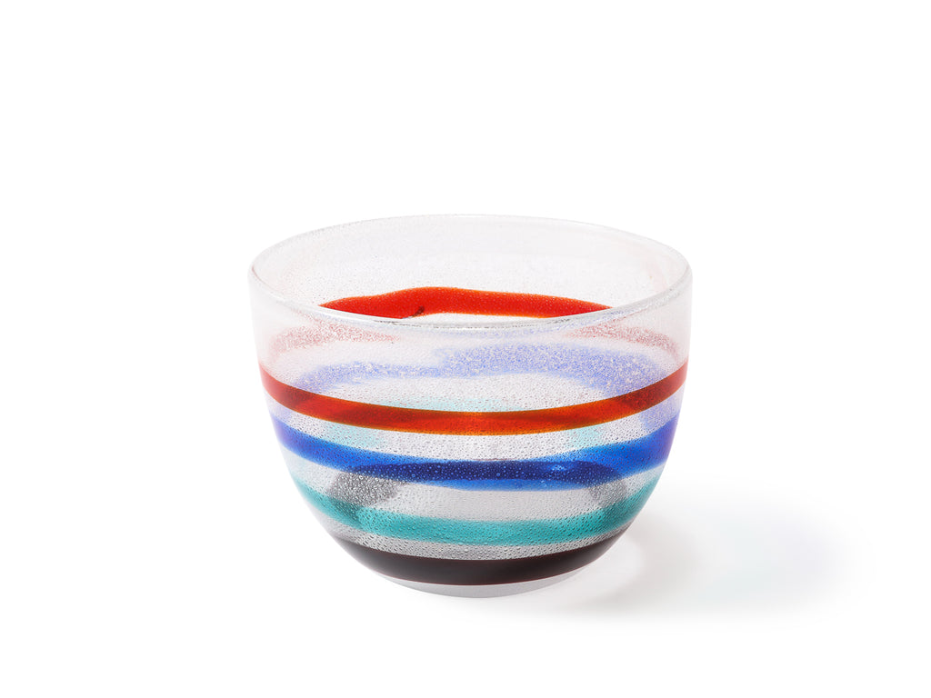 Italy | c. 1959 Clear & colored blown glass. Great scale with internal bubbles and vibrant color stripes. Signed on underside by maker.