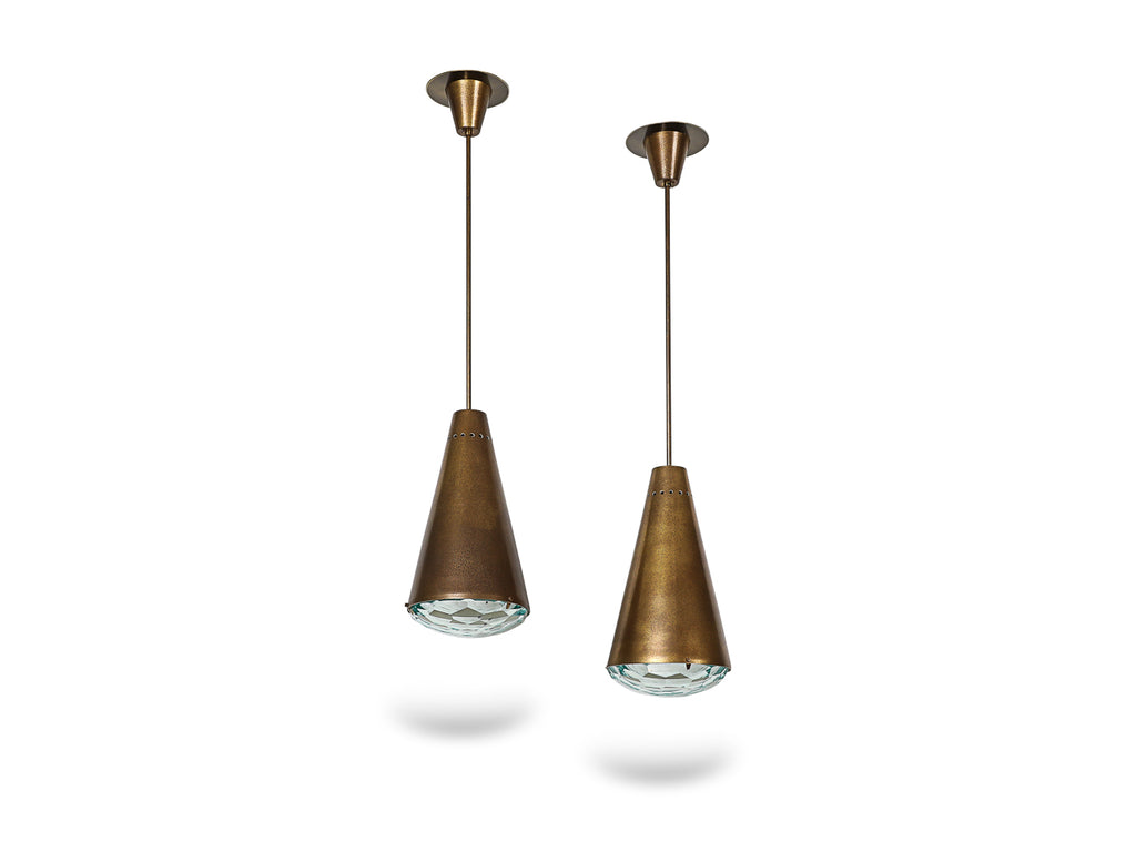 Brass, faceted glass. 1 x E26 sockets per light. Priced individually. *A total of 4 pendants available. Priced individually.