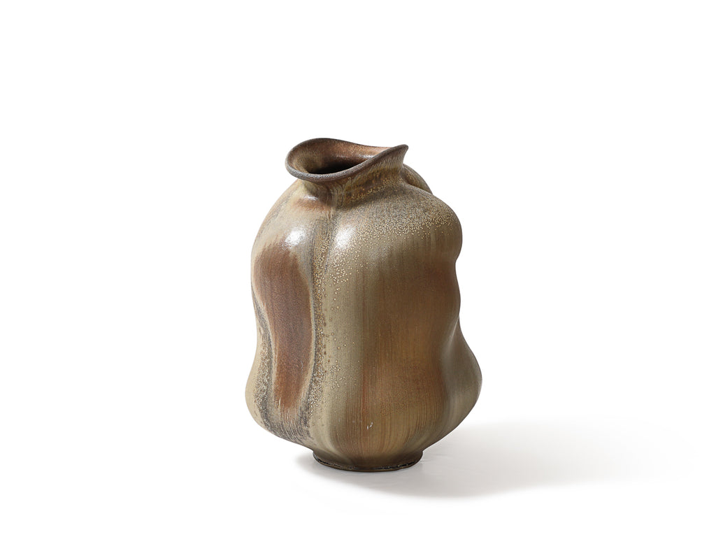 Glazed stoneware. Anagama wood-fired. Signed on underside.