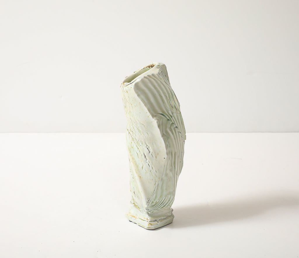 USA | 2024 Glazed porcelain. Wood fired, hand-built vessel form with cream and celadon glazes. Artist-signed on underside.