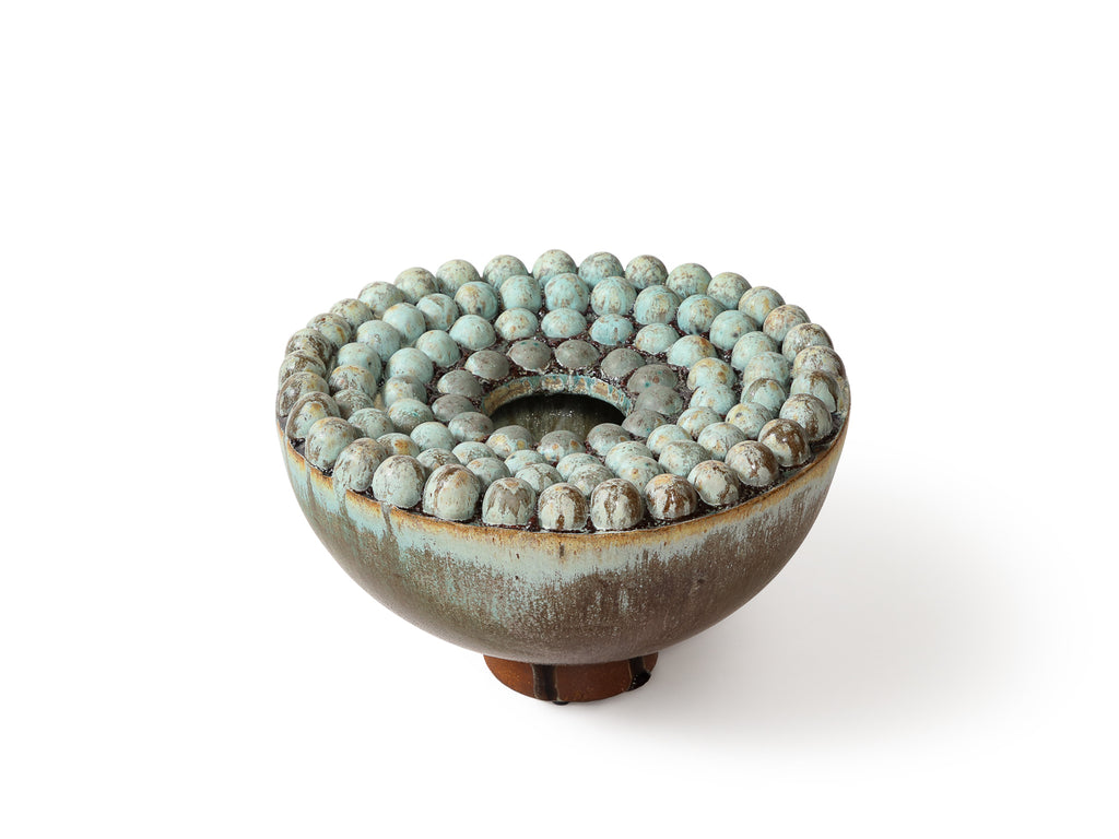 USA | 2023 Glazed stoneware. Blue and brown glazes, with applied orb forms. Artist-signed on underside