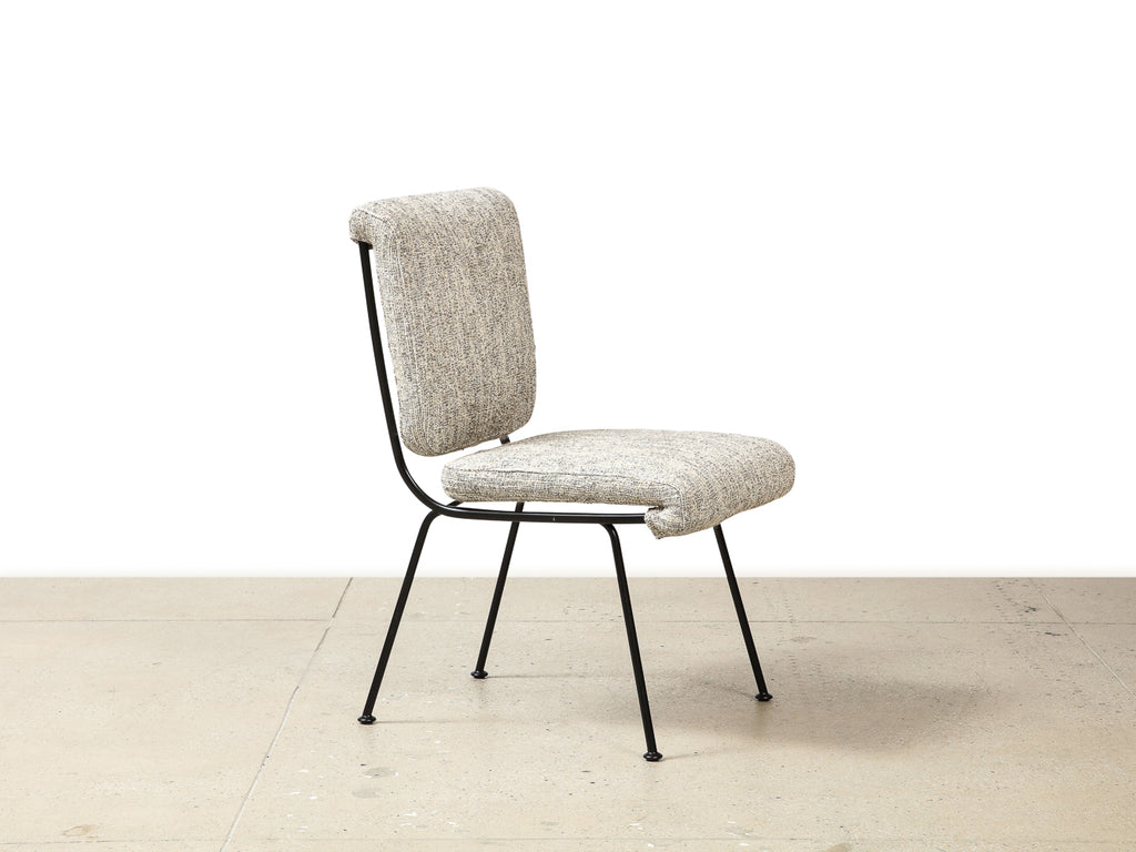 Painted iron, fabric. Sculptural dining chair with floating seat and back made exclusively for Donzella, LTD. This chair is not only artistic, but very comfortable as well. Price shown is per chair. COM 2 yards per chair.