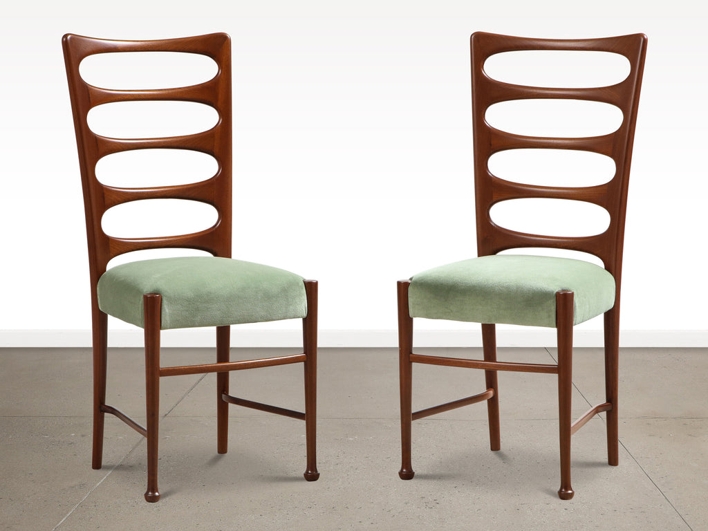 Italy | c. 1955 Teak, velvet fabric. Price includes full restoration & upholstering in fabric supplied by client. We currently have 3 pairs available.
