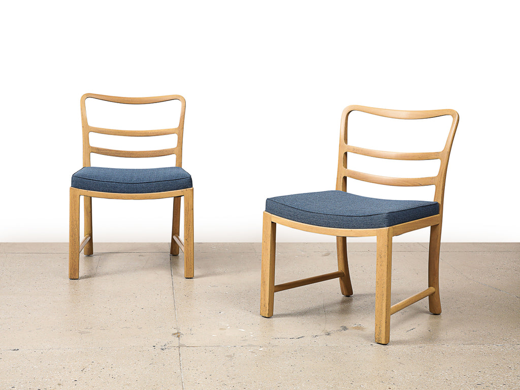 USA | c. 1946 Bleached mahogany, upholstery. Model #4594 side chair, produced by Dunbar Furniture Company. 2nd matching pair available that has not yet been restored. Price shown is per pair. A rare model.