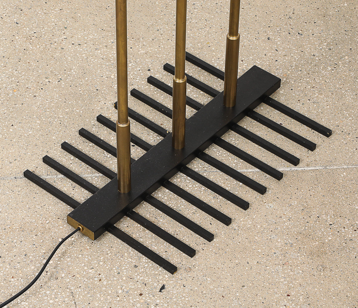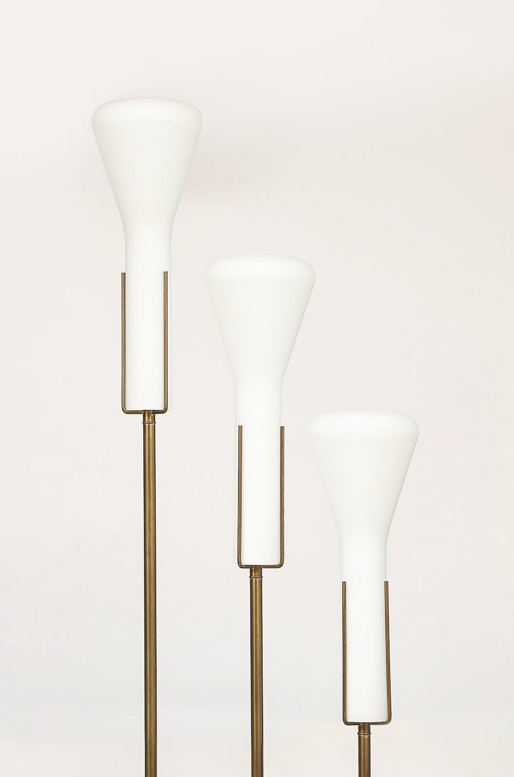 Italy | c. 1956 Painted metal, brass, frosted glass. This light takes 3 standard E26 bulbs.