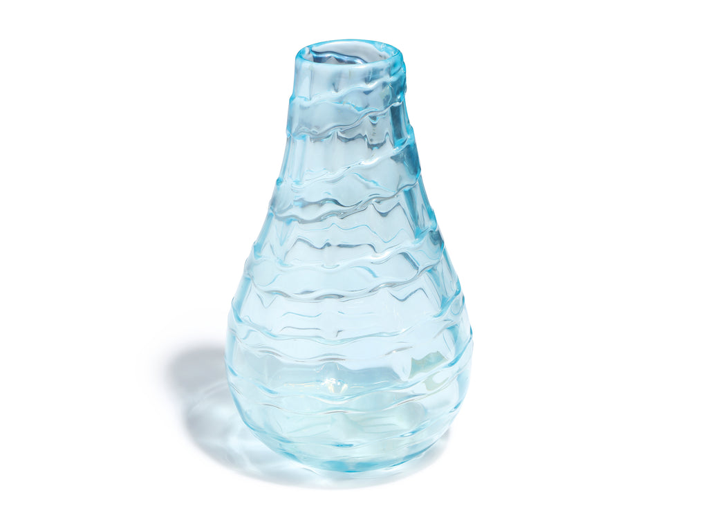 Italy | c. 1940 Pale blue glass vase with textured spiral pattern. Iridescent finish to the glass. Great scale and beautiful model.