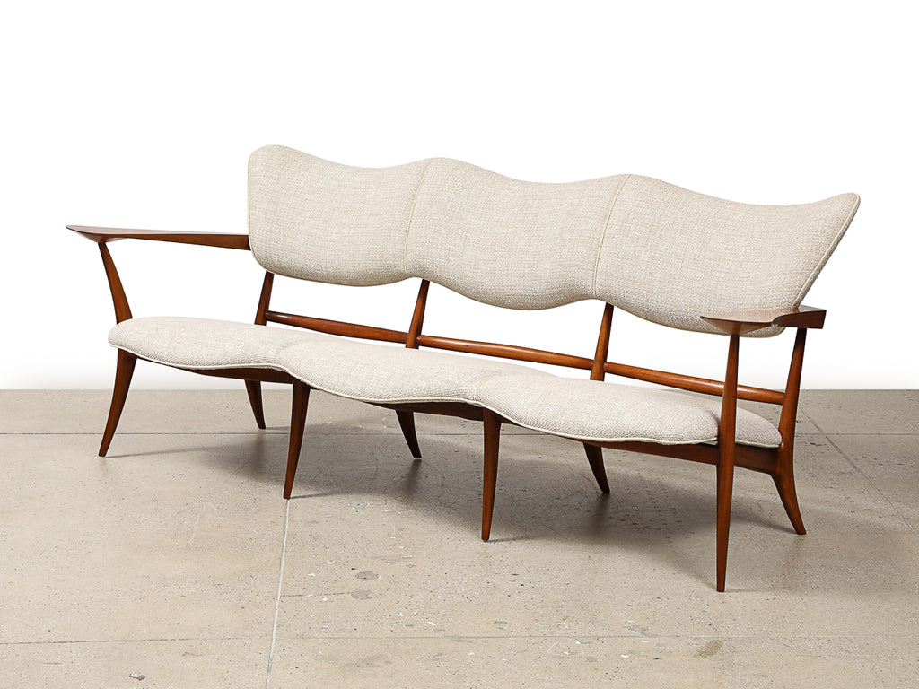 Italy | c. 1947 Walnut, upholstery. Made by Ariberto Colombo – Cantú, Italy. A rare model and great form. This sofa has been authenticated by the Archivio del Design di Ico Parisi.