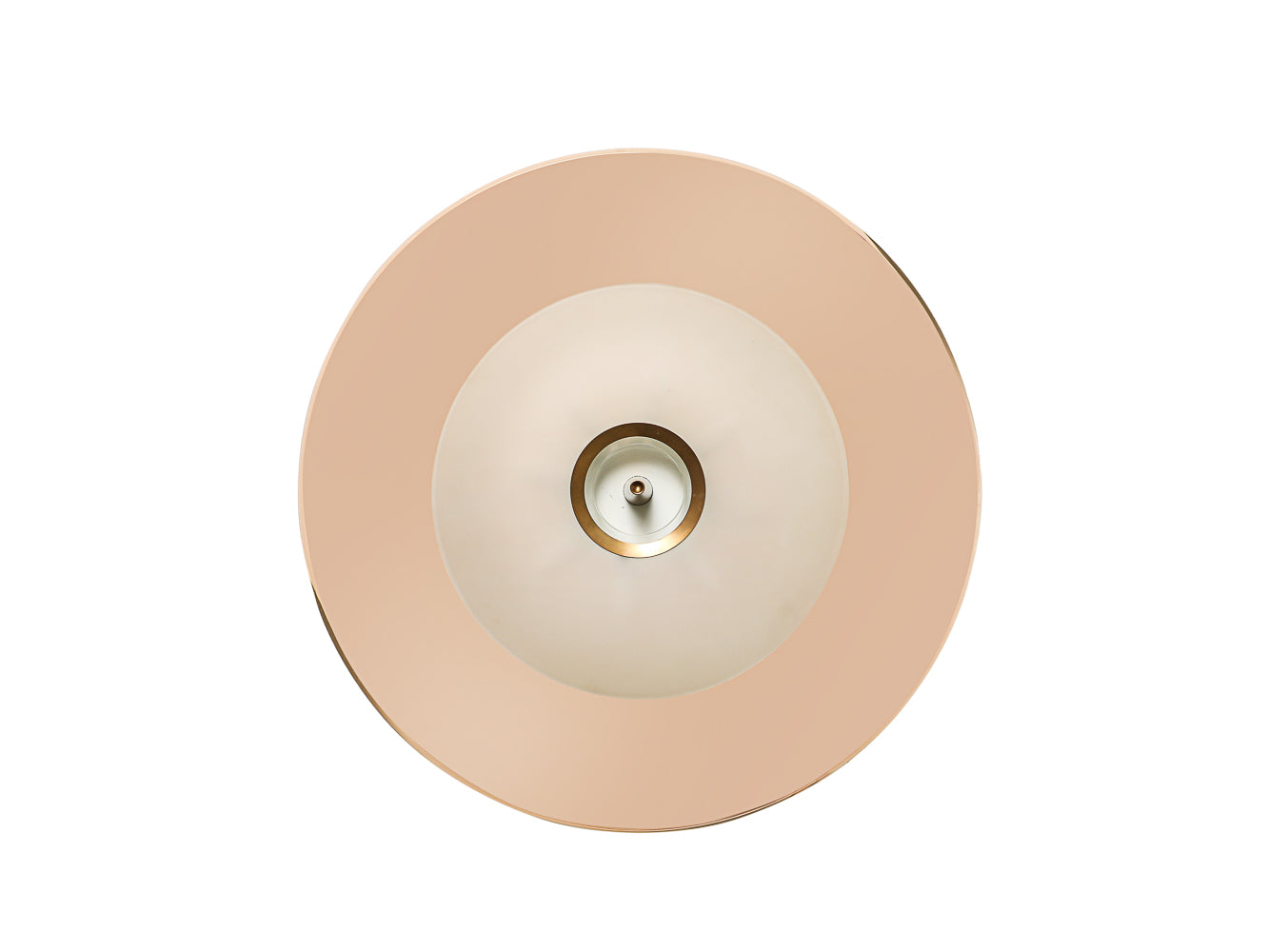 Colored glass, frosted glass, brass. 8 x E12 [candelabra] sockets. A beautiful example with a rose-colored glass saucer form. This fixture has been UL listed.
