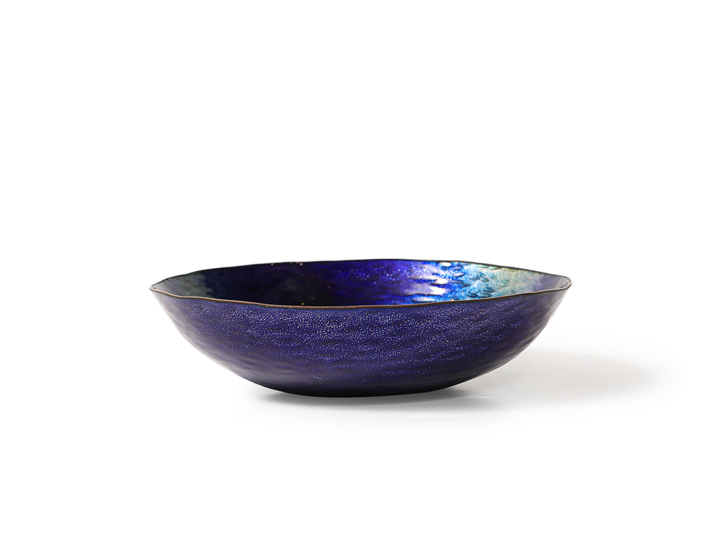 Italy | c. 1955 Enamel on copper. Brilliant blue color with exposed copper edges. Artist-signed on underside.