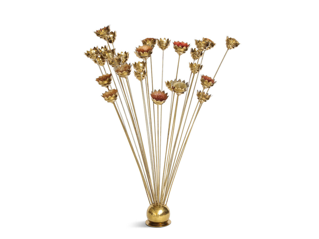 Italy | c. 1965 Brass, horsehair. Fantastic studio-made sculpture of 30 long-stem brass flowers with horsehair centers.