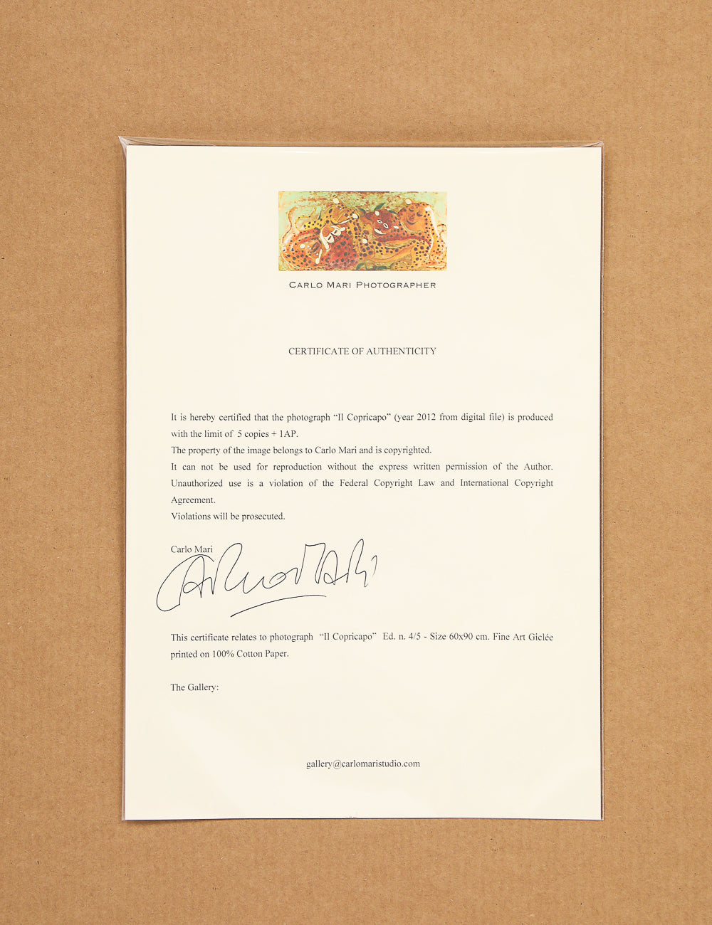 Notes: Certificate of authenticity on file.