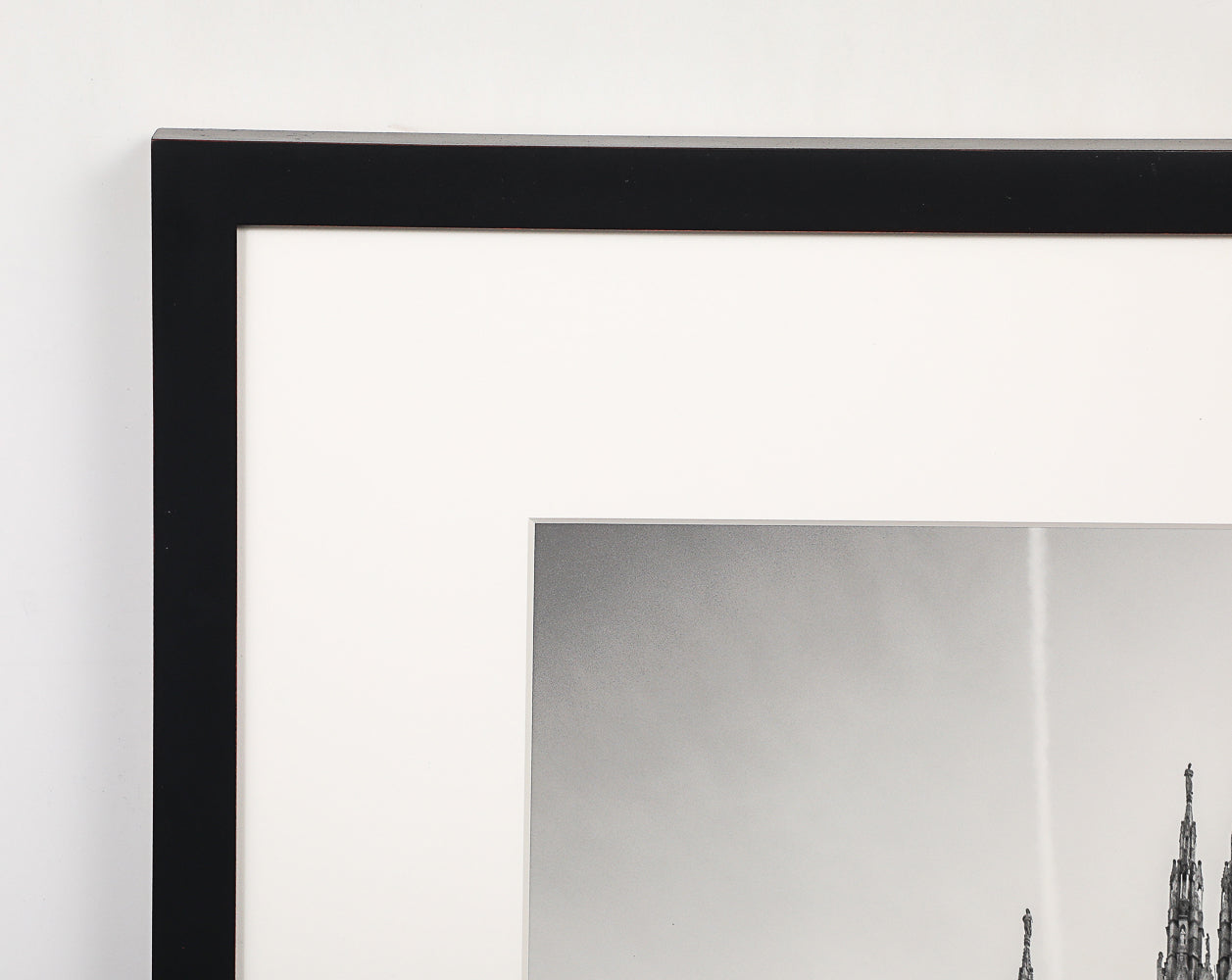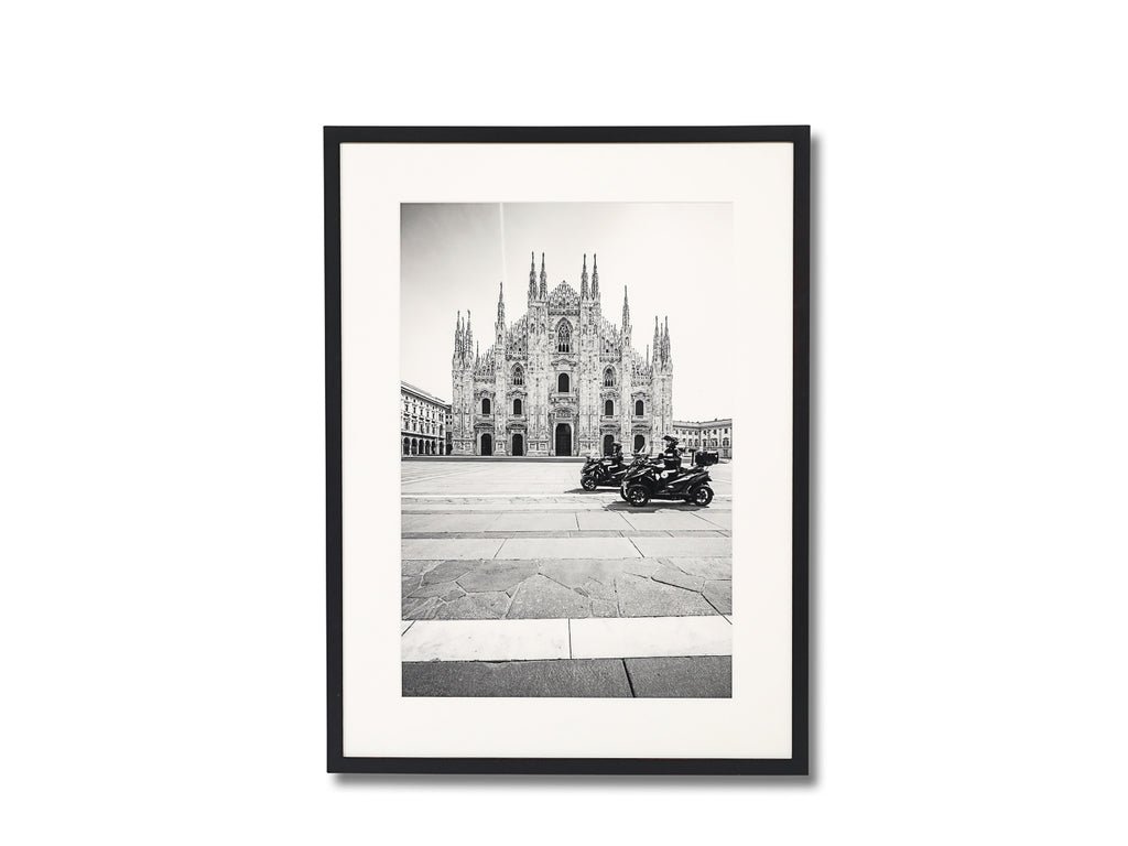 Wood, glass, photo paper. Black & white photograph of the Duomo cathedral in Milan. 1/2.