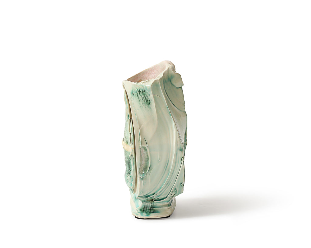 USA | 2024 Glazed porcelain. Hand-built vessel form with cream, jade green and pink glazes. Artist-signed on underside.