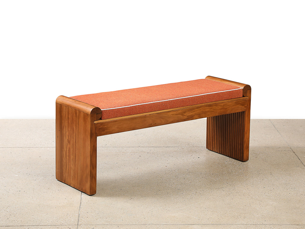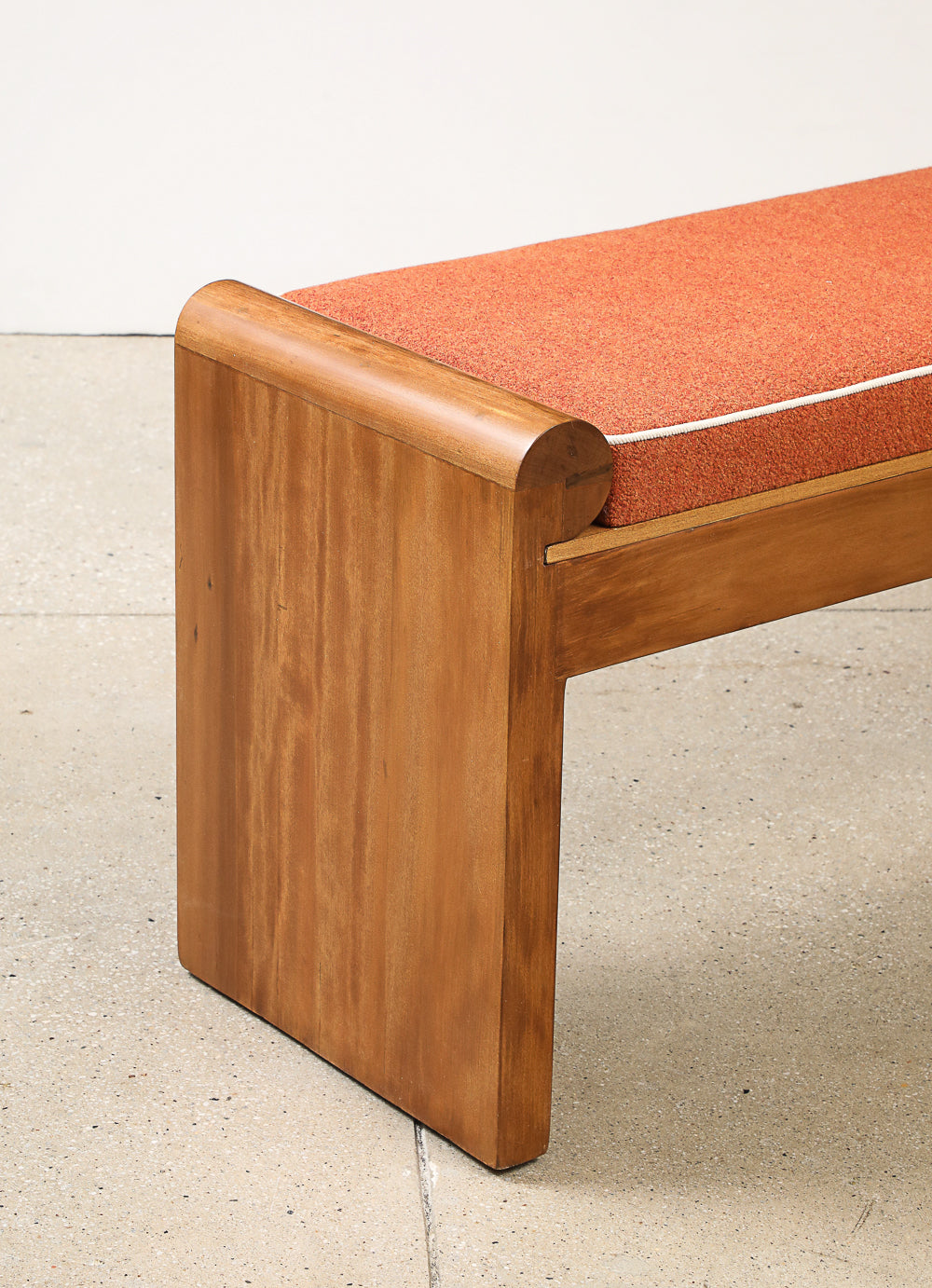 USA | c. 1941 Maple, plywood, upholstery. Unique wood bench with upholstered cushion.