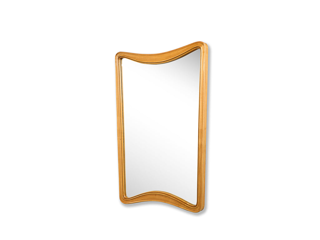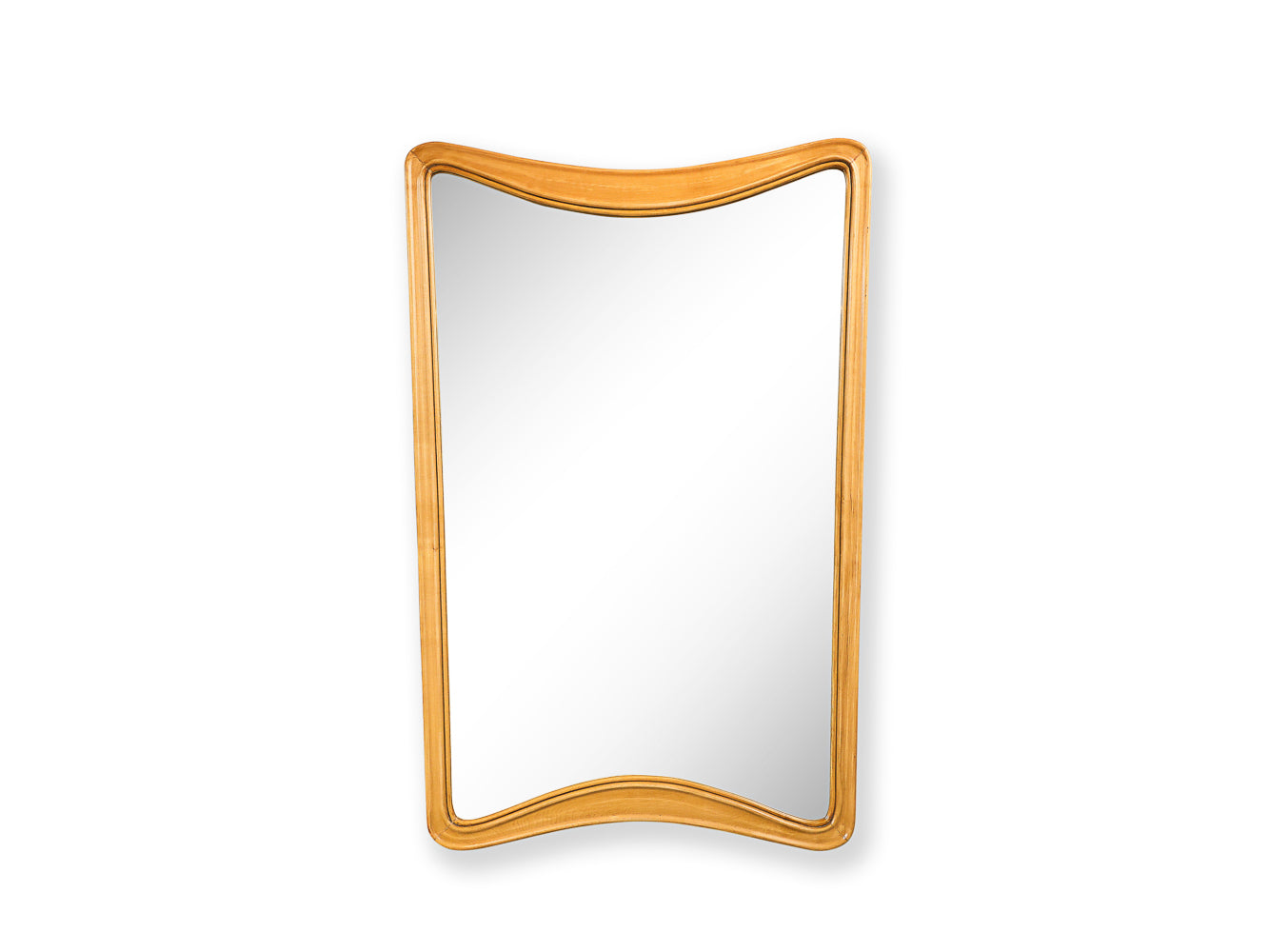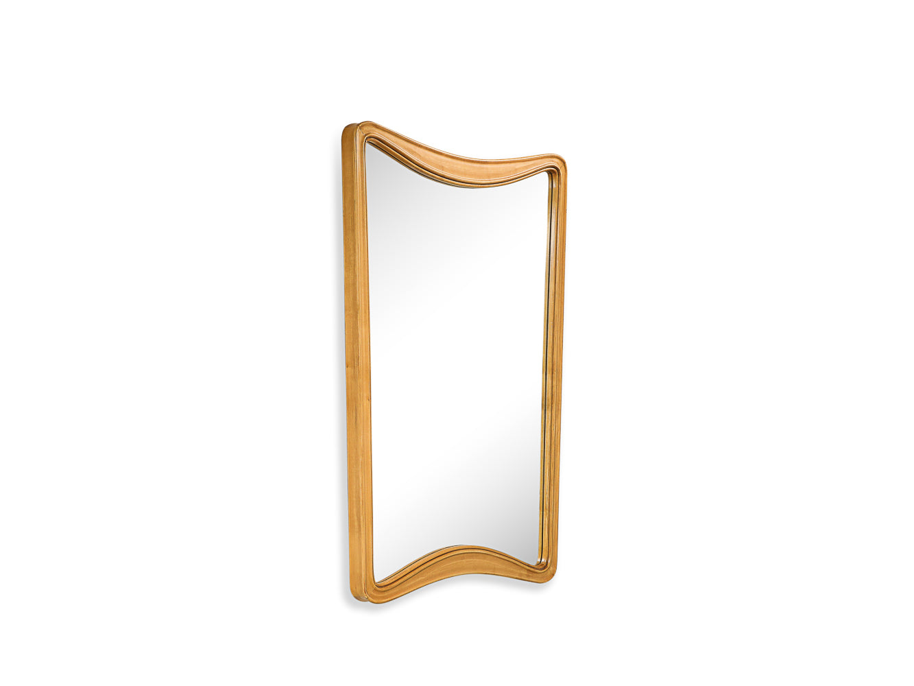 Italy | c. 1952 Ash wood, glass mirror. Large-scale mirror with wood frame carved to mimic draped fabric.