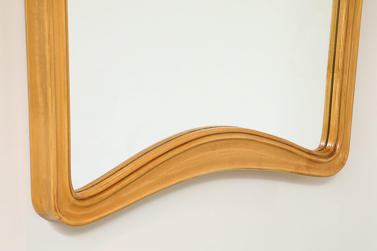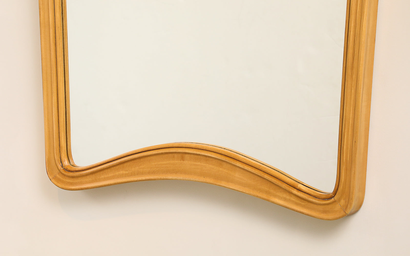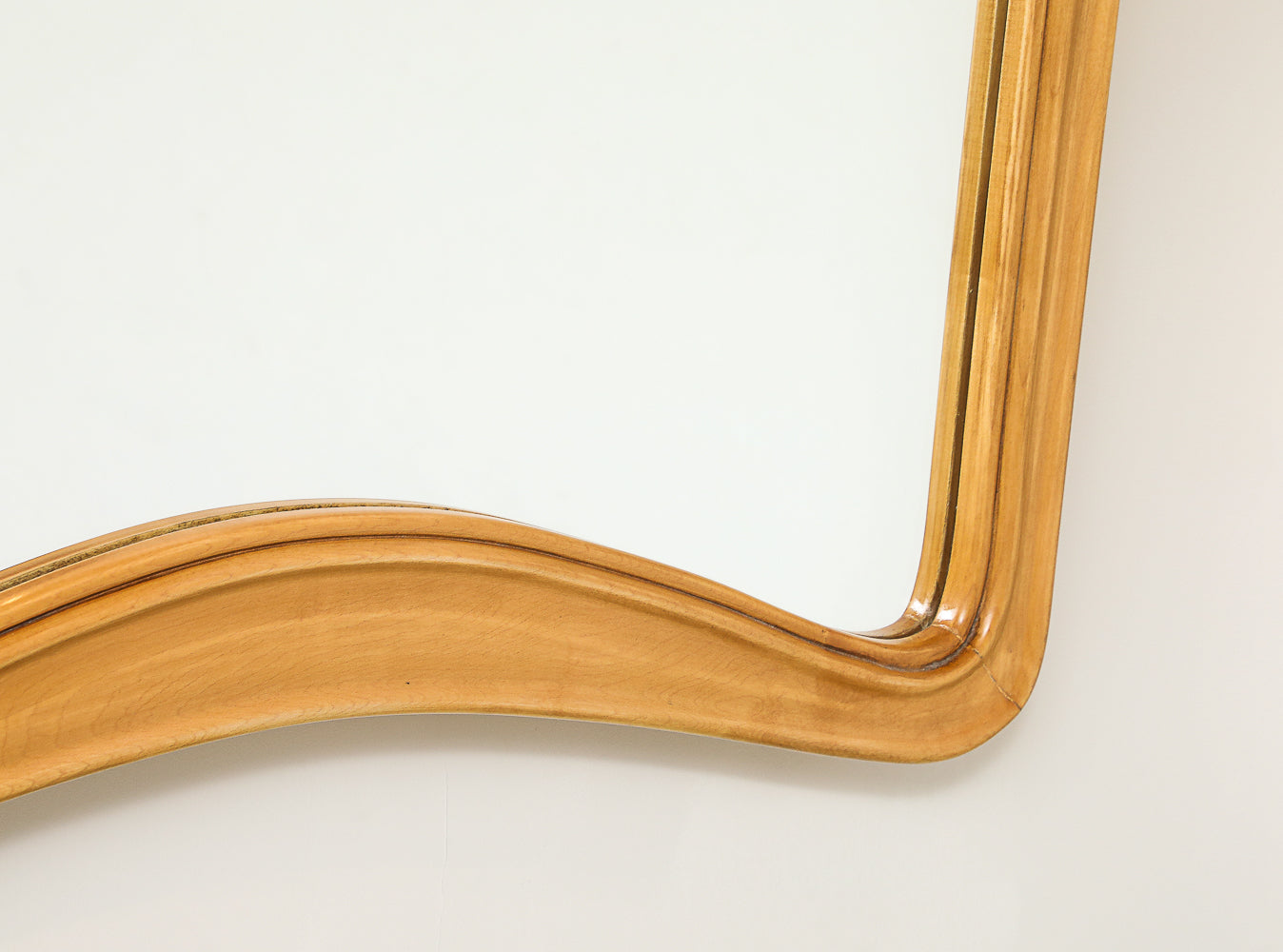 Italy | c. 1952 Ash wood, glass mirror. Large-scale mirror with wood frame carved to mimic draped fabric.